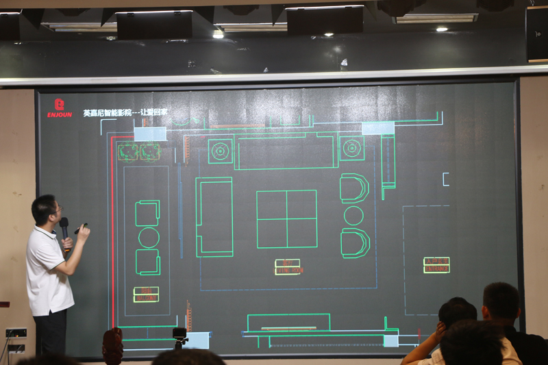 為了讓遠道而來的朋友們能夠滿載而歸,英嘉尼總部一禾科技精心策劃了多項精品課程和互動環節。課程內容涵蓋家庭影院行業發展及英嘉尼品牌文化、家庭影院產品基礎認知及賣點、家庭影院營銷落地策略等干貨,讓合作伙伴可以全方位地提升專業知識與銷售實戰能力。一禾科技董事長陳小林先生、運營總監周大兵先生和技術總監朱文濤先生親自上臺授課,分享多年實戰經驗。