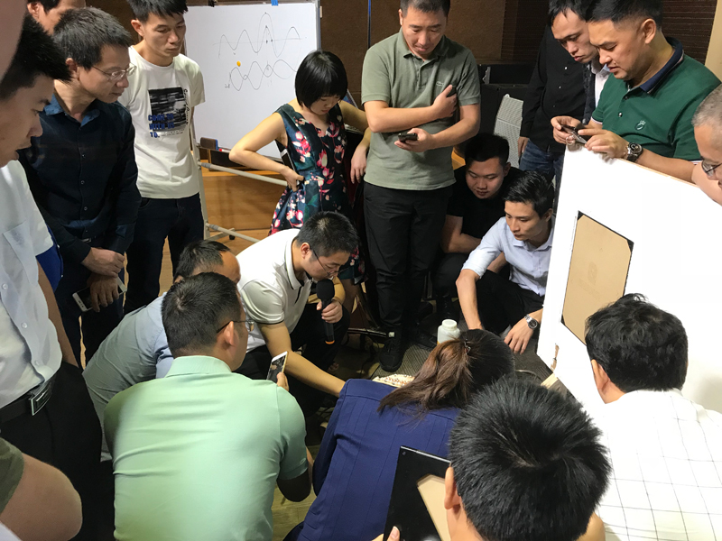 《家庭影院音箱布局及影院方案講解》與《產品安裝調試與實操》這兩門課程則由英嘉尼技術總監朱文濤先生主講,涵蓋的影音知識面也十分廣泛。朱文濤先生結合大量實例,深入淺出地進行講解,讓原本枯燥無味的專業技術課程也變得生動有趣。在產品安裝調試與實操環節,合作伙伴踴躍報名,積極參與產品調試。經過一輪的實踐操作之后,都能很好地解決常見的影音設備安裝調試問題。