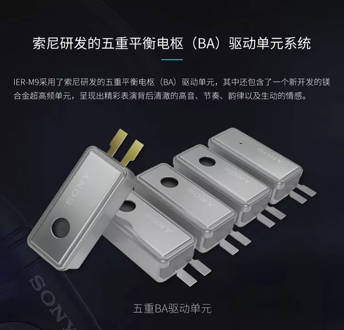 佩戴穩固,可有效避免耳機脫落的尷尬,提供更佳的音調平衡效果與出眾的噪聲隔離體驗。為舞臺監聽新研發的多平衡電樞(BA)驅動單元系統讓音樂家們不僅可以感受到韻律與音準,更能體驗到現場演出中相當微弱的聲音細節。索尼原創的BA驅動單元有兩個主要的獨特結構,直接驅動結構和T形電樞,可有效解決電樞微小振蕩造成的干擾。索尼采取的T形電樞具有對稱移動,提高了線性度,達到了更理想的音質。
