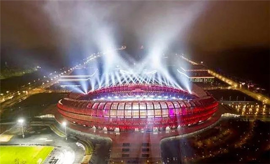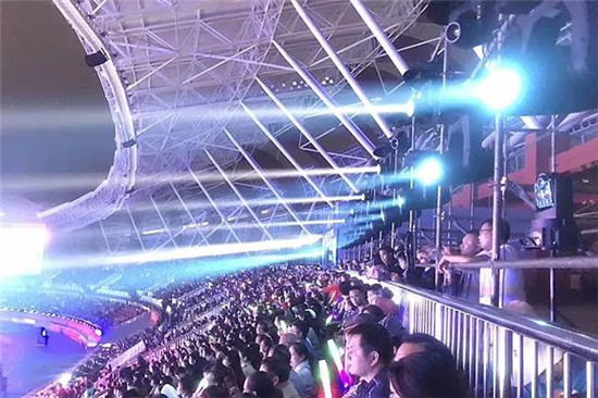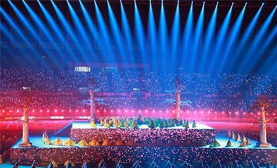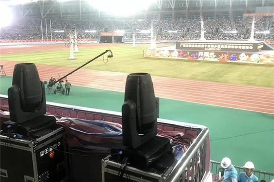 此次項目使用了珠江燈光上百臺尊能系列光束、切割、染色三款產品,在建筑面積46534平方米內的體育場內,尊能系列燈光效果非常突出,遠程距離的投射還保持光色飽滿的力度,同時擁有高亮度和高顯指數,高度還原民族服飾特色色彩。
