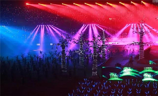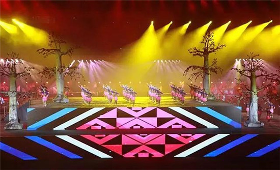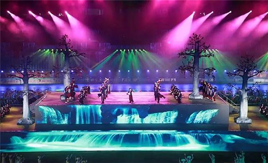 這次文藝演出采取超大型LED屏、聲光電技術和現場文體表演相結合的手法,將各種獨具崇左特色的文化元素呈現出來,珠江燈光尊能系列在這場精彩斑斕的視覺盛宴中起到了不可或缺的角色,充分展現了多彩的少數民族風情文化特色與魅力。