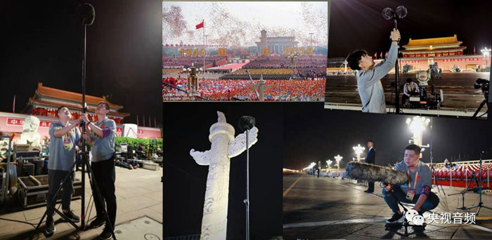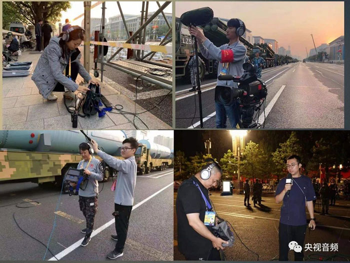 70周年國(guó)慶盛典是中央廣播電視總臺(tái)首次以4K+環(huán)繞聲模式直播的大型政治活動(dòng),也是第一次用5.1環(huán)繞聲直播的閱兵活動(dòng)。這次電視直播設(shè)計(jì)了一個(gè)總系統(tǒng)和ABCDEF六大分系統(tǒng)來(lái)共同完成制作,對(duì)于電視或者影院里的觀眾來(lái)說(shuō),您所聽(tīng)到的環(huán)繞聲,是動(dòng)用了3個(gè)演播室、4套轉(zhuǎn)播系統(tǒng)、5輛錄音車,共計(jì)24張大中型調(diào)音臺(tái),外加20套便攜式調(diào)音臺(tái)共同制作完成的。現(xiàn)場(chǎng)布置了近200支各類話筒,多軌錄制達(dá)到330通道,在廣場(chǎng)和沿線布設(shè)的各類音頻線纜長(zhǎng)度接近30公里,規(guī)模之大,前所未有。