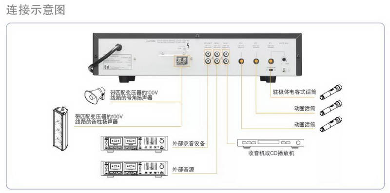 3個話筒輸入,2個AUX輸入和1個錄音輸出