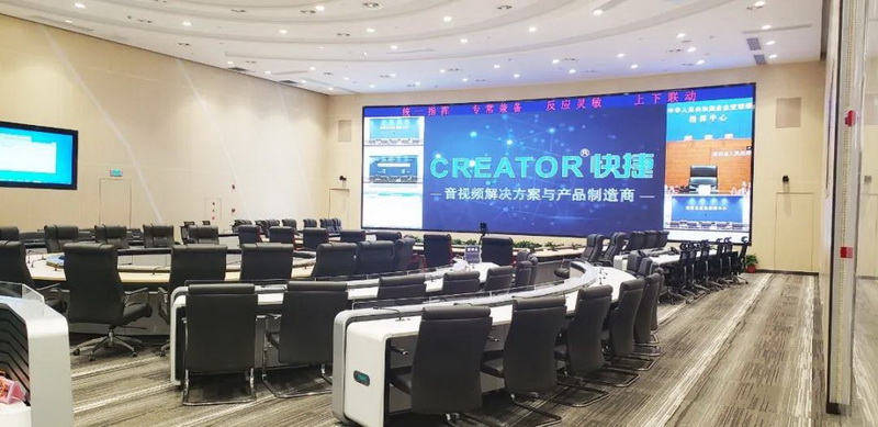 基于以上需求,在此次的升級(jí)改造中,我們?cè)谑?yīng)急指揮中心啟用了以CREATOR快捷UHD-MAX144144 4K矩陣為核心的4K非IP坐席協(xié)作管理平臺(tái),在應(yīng)急管理廳的其他會(huì)議室中則采用了16/36路混合矩陣以及5套中央控制系統(tǒng)。