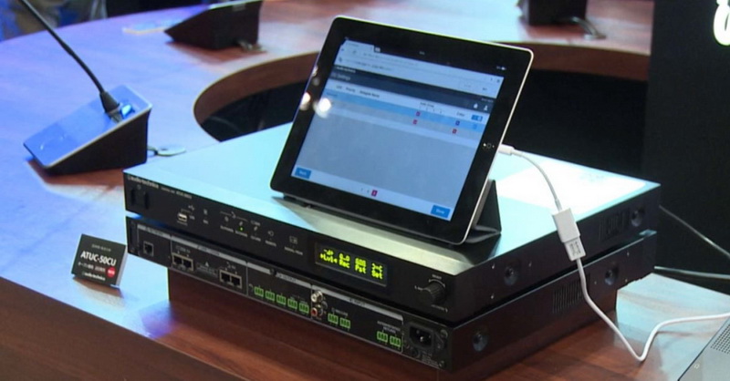 對(duì)于此類重要的會(huì)議場(chǎng)所,鐵三角為其搭配了ATUC-50手拉手會(huì)議系統(tǒng)。