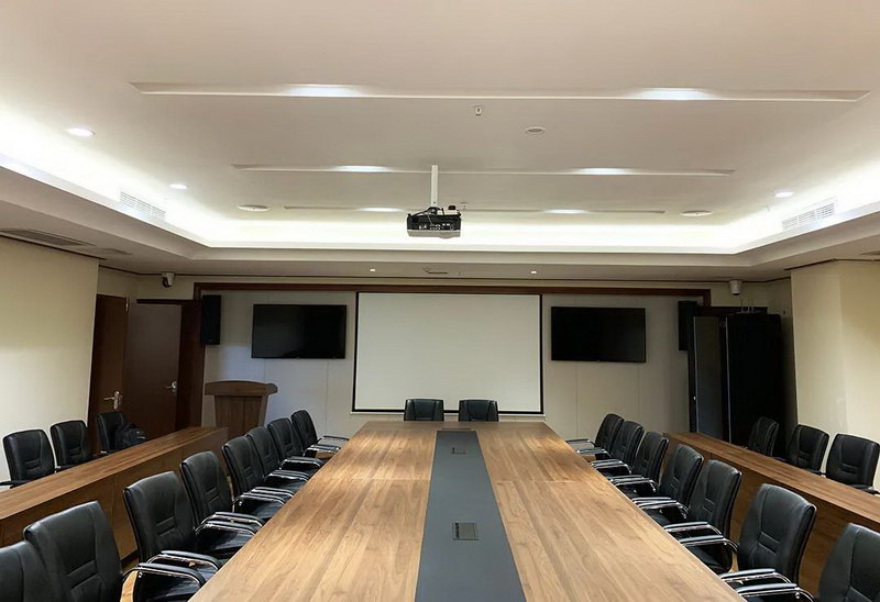 整個工程的擴聲系統安裝完成后,在精確調整指向角度后,聲音達到了甲方認可的效果,系統運行極其穩定,為會議使用時提供清晰、自然的語言擴聲。